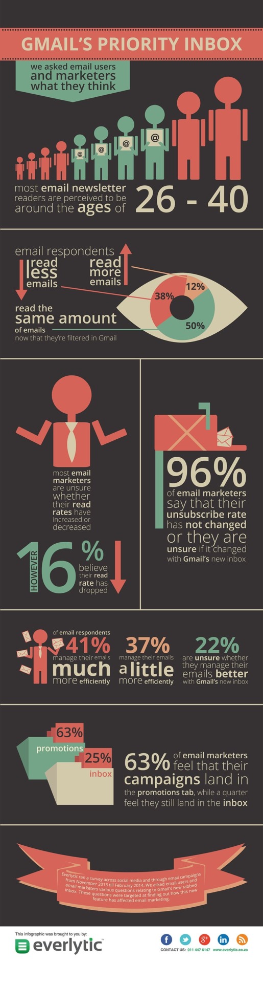 Everlytic ran a survey for 4 months, asking email users and marketers questions relating to Gmail’s new inbox. These are the results.